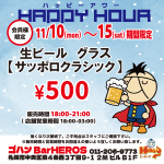 11/10(月)~15(土)期間限定【ハッピーアワー】