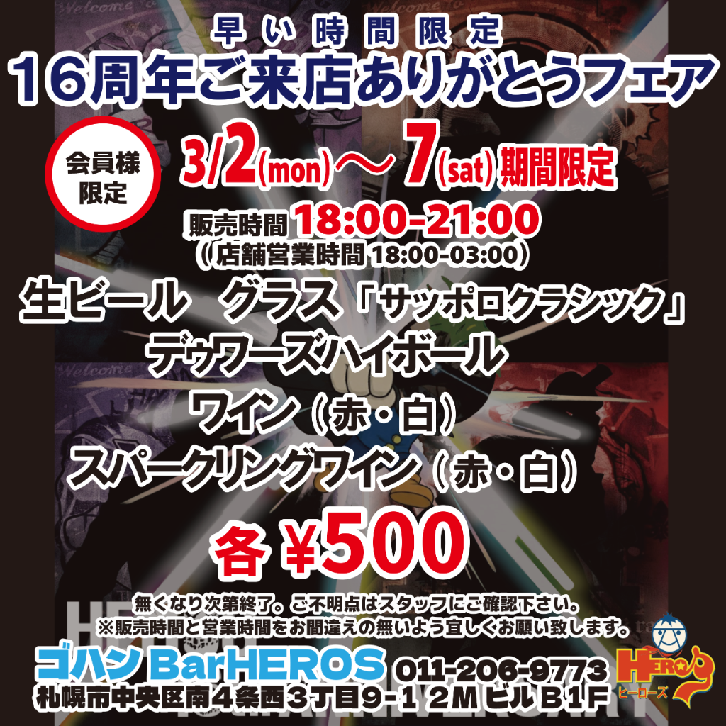 ヒーローズ16周年イベントに、たくさんのご来店をいただき誠にありがとうございました。