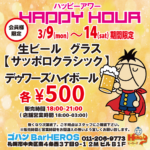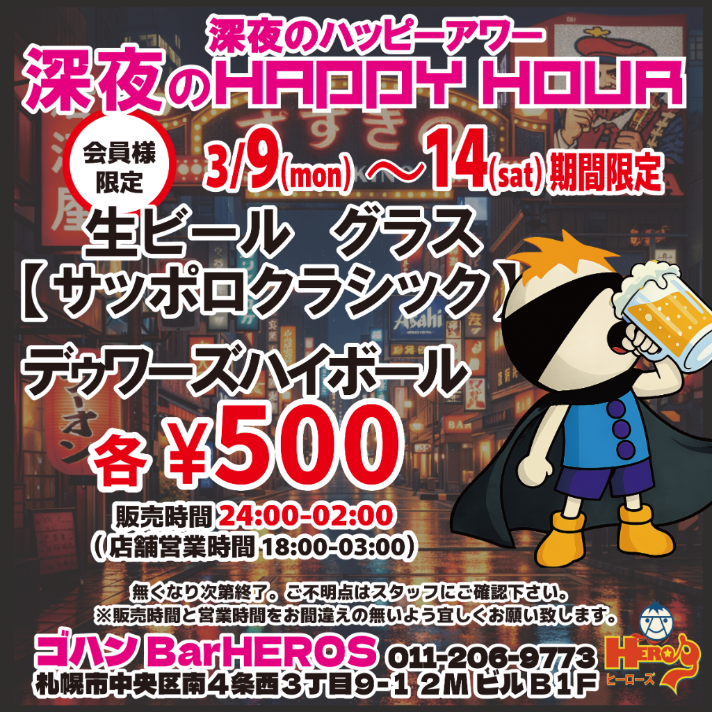 3/9(月)~14(土)期間限定【深夜のハッピーアワー】