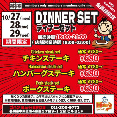 ヒーローズ連休後のステーキ&ビールフェア