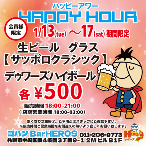お知らせ2023.08.128/13~15の営業について 8/13~15のお盆期間はランチも営業致します。時間12:00~23:00(ラストオーダー22:30)会員様限定の営業となりますのでご了承下さい。 ご予約お問合せはお電話でお願い致します。011-206-9773